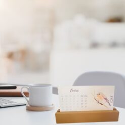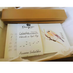 Calendario Ecológico confeccionado en papel de alga de 200gr. Color blanco. Diseño con ilustraciones de aves.